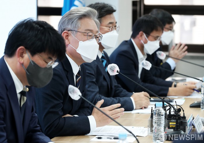 [서울=뉴스핌] 이형석 기자 = 이재명 더불어민주당 대선 후보가 24일 서울 여의도 중앙당사 회의실에서 열린 민생·개혁 입법 추진 간담회에서 모두발언을 하고 있다. 2021.11.24 leehs@newspim.com |