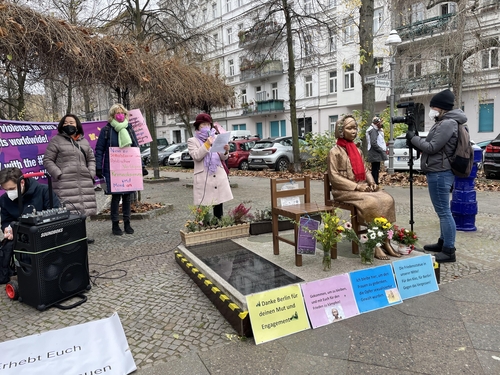 최영숙 코리아협의회 위안부공동연구모임 활동가는 "국제 반(反)여성폭력의 날을 맞아 1991년 처음 침묵을 깬 일본군 위안부 피해자 김학순으로부터 시작된 우리의 싸움을 독일 역사의 일부분으로 인정하고, 소녀상을 여성에 대한 성폭력 반대의 상징으로 이곳에 계속 존치할 것을 촉구한다"고 말했다.