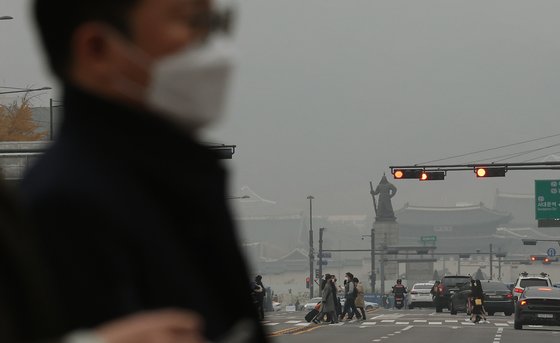 올 하반기 첫 초미세먼지 위기경보 '관심' 단계가 발령된 21일 오후 서울시내가 뿌옇게 보이고 있다. 뉴스1 |