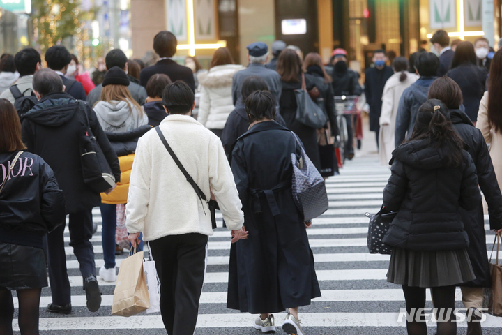 [도쿄=AP/뉴시스] 30일 일본 도쿄에서 시민들이 건널목을 건너고 있다. 2021.12.03. |