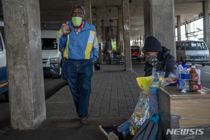 [소웨토=AP/뉴시스] 2일(현지시간) 남아프리카공화국 소웨토의 한 택시 승차장 주변에서 노점상이 간식거리를 팔고 있다. 남아공은 오미크론 변이가 발견된 지 일주일 만에 변이의 급격한 확산을 막기 위해 백신 접종을 가속화하고 있다. 2021.12.03. |