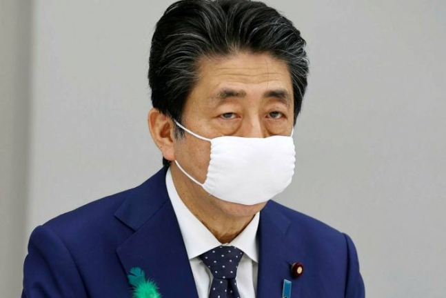 아베 신조 전 일본 총리가 ‘아베노 마스크’를 착용한 모습 |