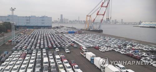 수출용 자동차가 늘어선 일본 요코하마항 부두 전경. [연합뉴스 자료사진] |