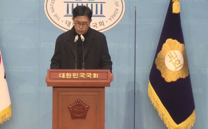 [서울=뉴스핌] 김은지 기자= 9일 서울 여의도 국회 소통관에서 노재승 국민의힘 공동선대위원장이 사퇴 기자회견을 하고 있다. [사진=국회의사중계시스템] 2021.12.09 kimej@newspim.com |