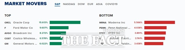 반면, 제약사 모더나는 5.56% 빠졌고 엣시는 3.89% 하락했다.