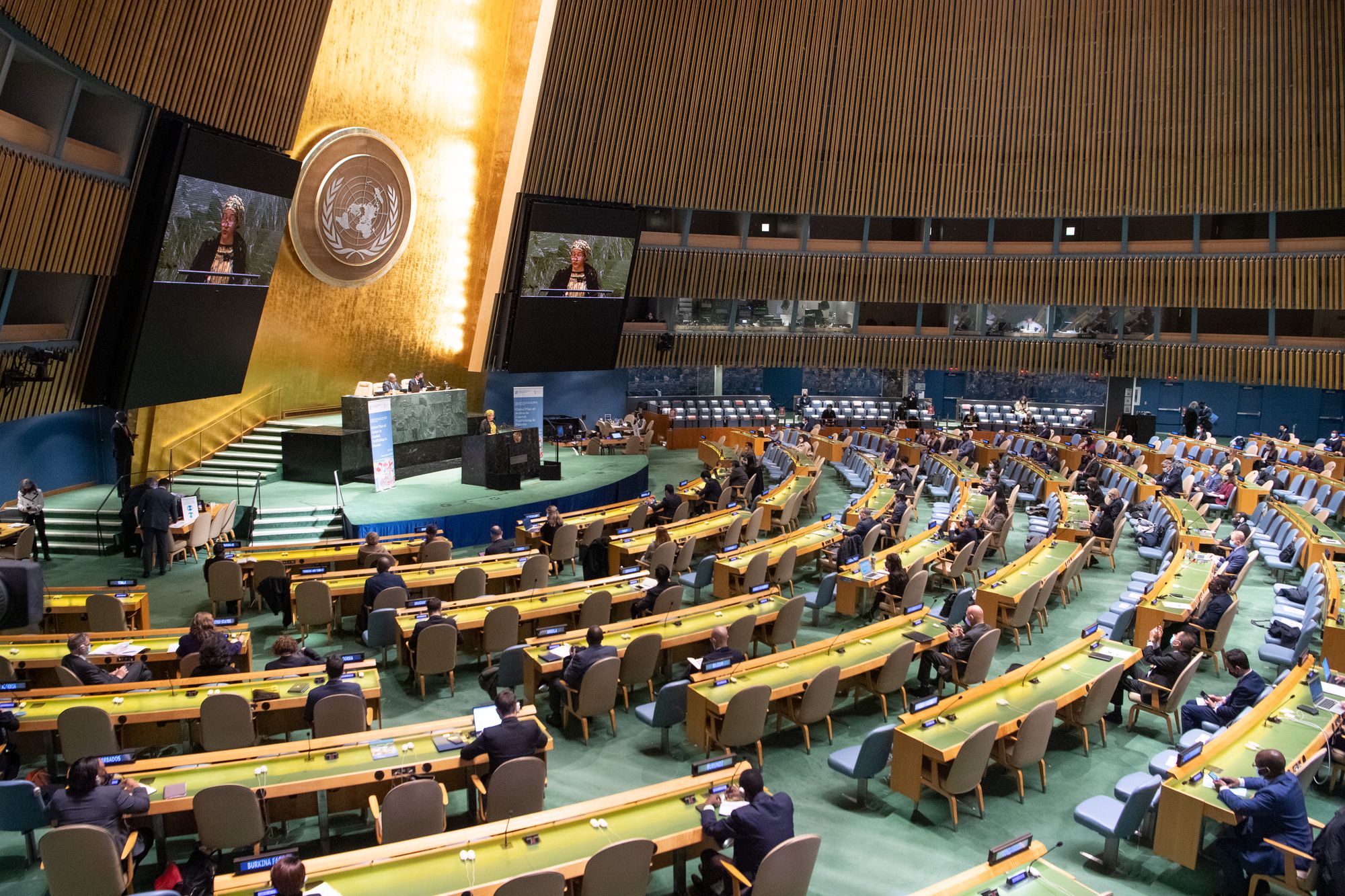 지난달 미 뉴욕 유엔본부의 유엔 총회장 모습. 유엔은 김정은 집권 10주년 기념일인 17일(현지시각 16일) 북한인권결의안을 전원 합의 방식으로 통과시켰다. 한국은 3년 연속 불참했다. /유엔 제공 |