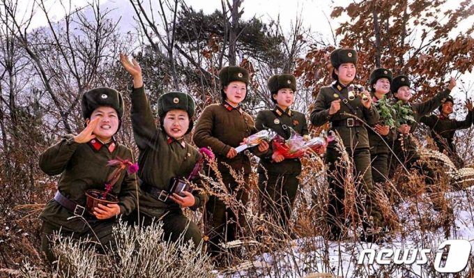 (평양 노동신문=뉴스1) = 북한 노동당 기관지 노동신문은 16일 솔재령 초소의 여성군인들의 충성심을 조명했다. 신문은 이들이 김일성 주석과 김정일 국방위원장의 동상이 있는 만수대 언덕에 매년 수 백~수 천개의 꽃다발을 공수하고 있다며 이들이 '들꽃중대'로 불리기도 한다고 말했다. |