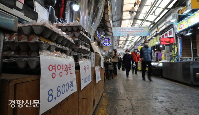 올 10월 소비자물가가 지난해 같은 달보다 3.2% 올라 9년 9개월 만에 최고 상승률을 기록했던 지난달 2일 서울 서대문구 영천시장에서 시민들이 장을 보고 있다. 김창길 기자 |