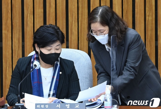 (서울=뉴스1) 구윤성 기자 = 지난 11월 29일 서울 여의도 국회에서 열린 중앙선거관리위원회 위원(문상부) 선출에 관한 인사청문특별위원회 첫 전체회의에서 서영교 위원장이 자료를 검토하고 있다. 2021.11.29/뉴스1 |