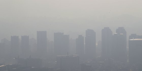 미세먼지 농도가 전국적으로 나쁨 수준을 보인 지난 16일 서울 남산공원에서 바라본 서울 도심이 뿌옇게 보이고 있다. 장진영 기자 |