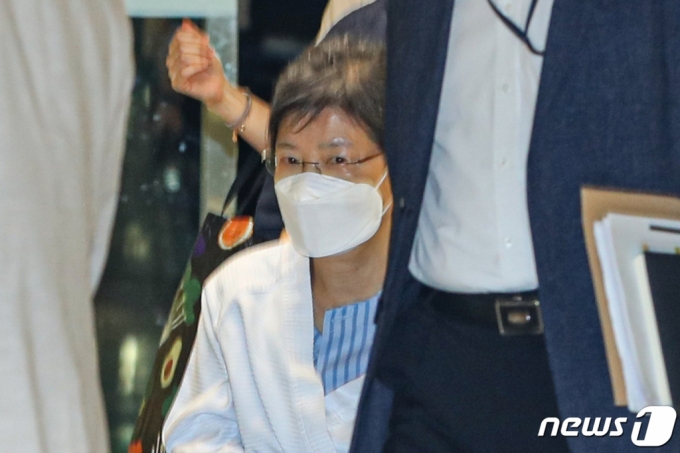 (서울=뉴스1) 성동훈 기자 = 최근 건강 악화를 호소해온 박근혜 전 대통령이 입원을 위해 20일 오후 서울 서초구 서울성모병원에 도착하고 있다. 2021.7.20/뉴스1 |