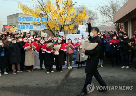 이날 대전교도소 앞에는 새벽부터 이 전 의원의 지지자들이 모여 현수막을 걸고 피켓을 드는 등 가석방 환영 행사를 준비했다. 지지자들의 환호 속에 교도소 정문을 나선 이 전 의원은 소감을 묻는 취재진에 "공기의 질감이 다르다"고 답했다. 그는 "문 하나 오는 데에 9번의 겨울을 거쳤다"며 "적지 않은 기간인데, 변함없는 사랑과 지지 덕분에 여러분을 뵙게 됐다"고 심경을 밝혔다.