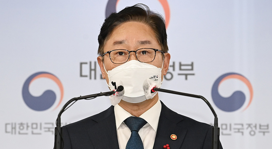 박범계 법무부 장관이 지난 24일 서울 종로구 정부서울청사에서 박근혜 전 대통령의 특별사면과 한명숙 전 국무총리의 복권 실시 등이 담긴 2022년 특별사면 관련 브리핑을 하고 있다. /사진=뉴스1 |