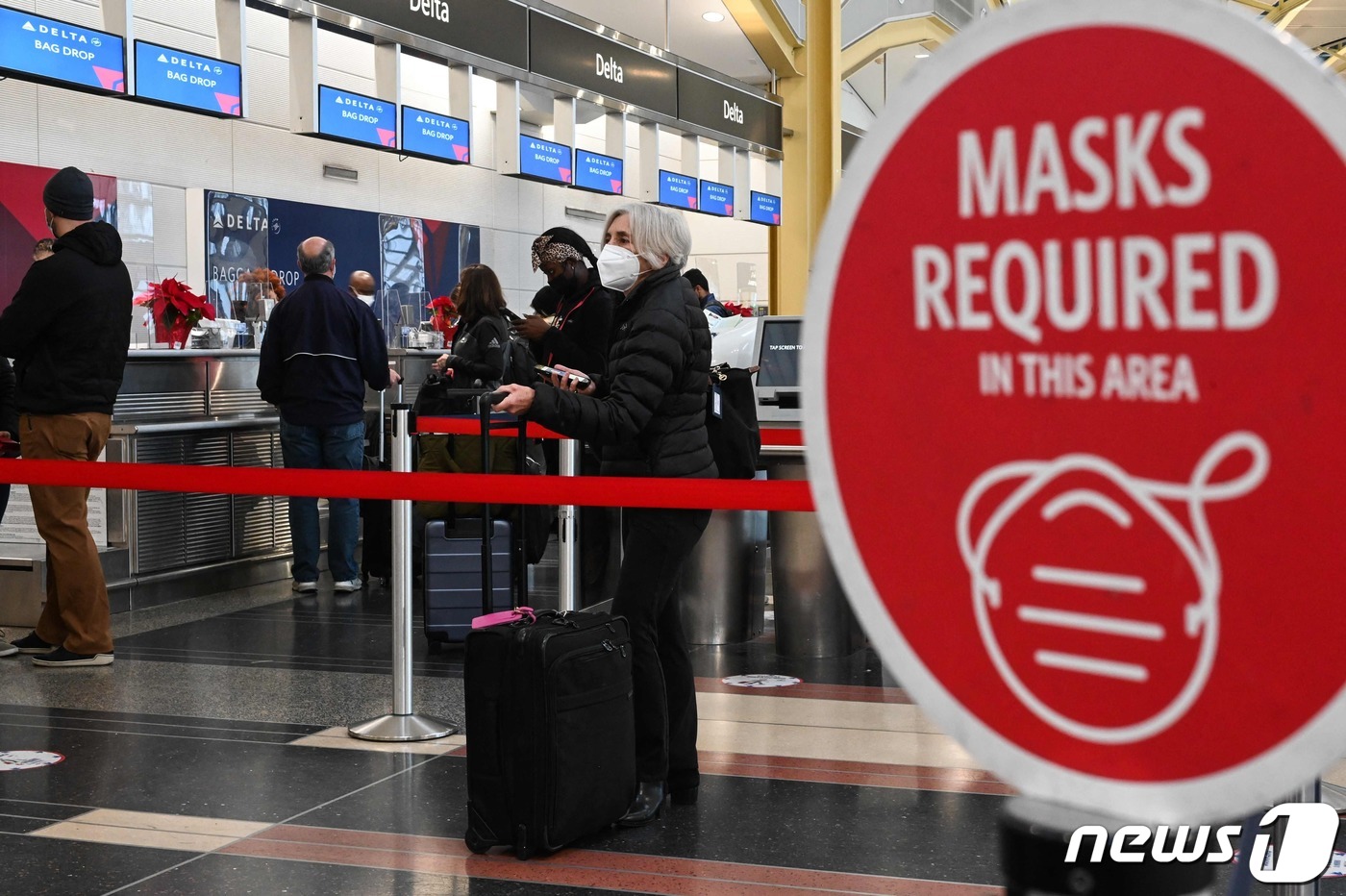 27일(현지시간) 미국 워싱턴D.C 소재 로널드레이건 국제공항에서 마스크를 쓴 여행객들이 탑승 수속을 밟기 위해 대기하고 있다. 2021.12.27 © AFP=뉴스1 |