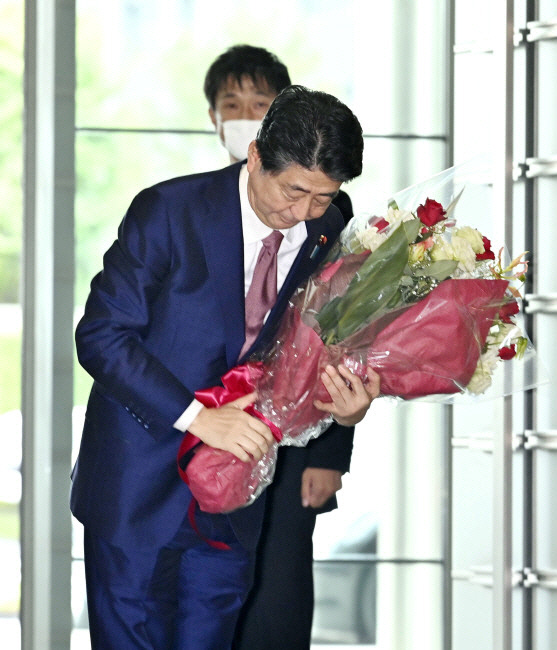 아베 신조(安倍晋三) 전 일본 총리가 16일 낮 12시42분께 도쿄 총리관저를 떠나고 있다. 아베 내각은 이날 오전 총사퇴를 하며 7년8개월 집권의 막을 내렸다. 2020.9.16 연합뉴스 |