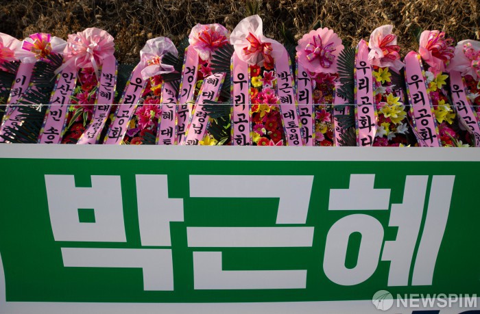 [서울=뉴스핌] 윤창빈 기자 = 박근혜 전 대통령의 특별사면을 앞둔 30일 오후 서울 강남구 삼성서울병원 앞에 지지자들이 가져다 놓은 화환이 줄지어 있다. 2021.12.30 pangbin@newspim.com |