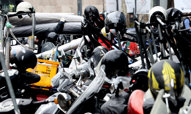 서울 동대문종합시장에 퀵서비스 기사들의 오토바이가 추자돼있다. (사진=연합뉴스) |