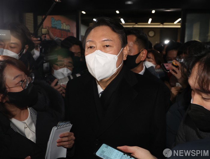 [서울=뉴스핌] 이형석 기자 = 윤석열 국민의힘 대선 후보가 3일 저녁 서울 여의도 중앙당사를 나서고 있다. 2022.01.03 leehs@newspim.com |