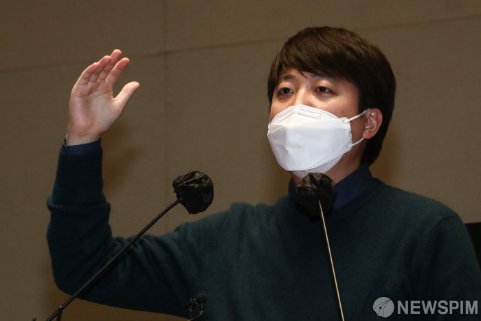 [서울=뉴스핌] 최상수 기자 = 국민의힘 이준석 대표가 6일 국회에서 열린 의원총회에 참석해 모두발언을 하고 있다. 2022.01.06 kilroy023@newspim.com |
