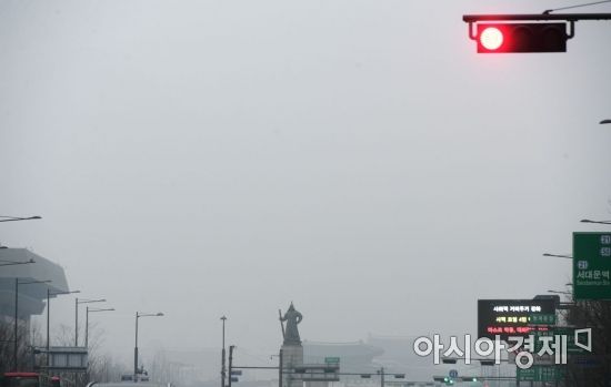 서을을 비롯한 수도권 일대에 미세먼지 농도가 '매우나쁨'을 나타낸 9일 서울시청 부근에서 바라본 광화문 일대가 흐릿하게 보이고 있다./윤동주 기자 doso7@ |