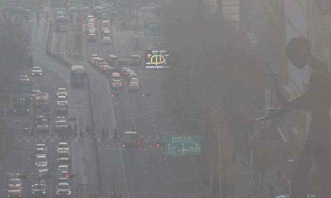 주말 동안 이어진 미세먼지 및 초미세먼지 고농도 상황이 계속된 10일 오전 서울 시내가 뿌옇다. 연합뉴스 |