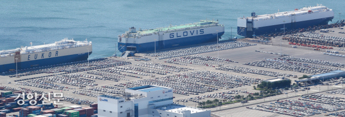 경기도 평택항에 수출 자동차가 가득한 모습./ 한수빈 기자 |
