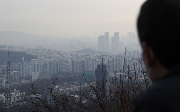 미세먼지 농도가 '나쁨' 수준이 예보된 지난 23일 오전 남산에서 바라본 서울 시내가 뿌옇게 보이고 있다. /사진=뉴스1 |