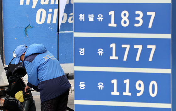(서울=뉴스1) 박지혜 기자 = 국제유가의 급등세로 국내 휘발유 가격도 상승세를 보이고 있는 가운데 23일 서울시내 주유소에서 휘발유를 리터당 1837원, 경유를 1777원에 판매하고 있다. 2022.1.23/뉴스1 |