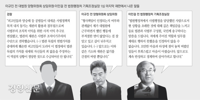 1심 재판부는 지난해 3월 이 전 위원에게는 징역 1년6개월에 집행유예 3년을, 이 전 실장에게는 징역 10개월에 집행유예 2년을 선고했다. 사법행정권 남용 사건에 대한 첫 유죄 판결이었다.