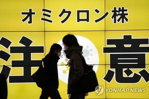 도쿄 거리의 오미크론 변이 주의 안내판 |