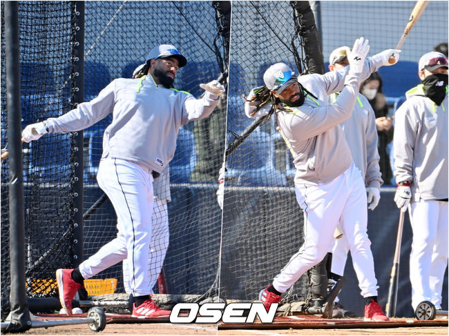 KT 새 외국인 타자 헨리 라모스가 타격훈련을 할때 스위치 타격을 하고 있다. 2022.02.05 /rumi@osen.co.kr