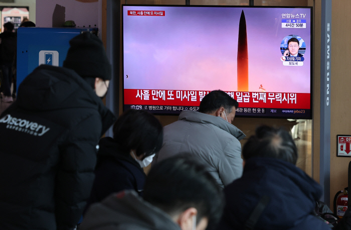 지난달 30일 시민들이 서울역에서 북한의 중거리탄도미사일 발사 관련 뉴스를 보고 있다. 연합뉴스 |