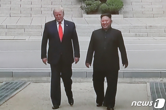도널드 트럼프 전 미국 대통령과 김정은 북한 국무위원장이 지난 2019년 6월 30일 오후 판문점에서 회동을 하고 있다. /사진제공=뉴스1 |