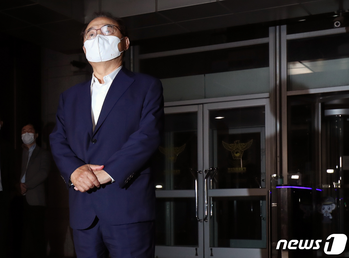 지난 2020년 5월22일 오거돈 전 부산시장이 부산경찰청 여성청소년수사과에서 조사를 받고 나오고 있다.2020.5.22/뉴스1 © News1 여주연 기자 |