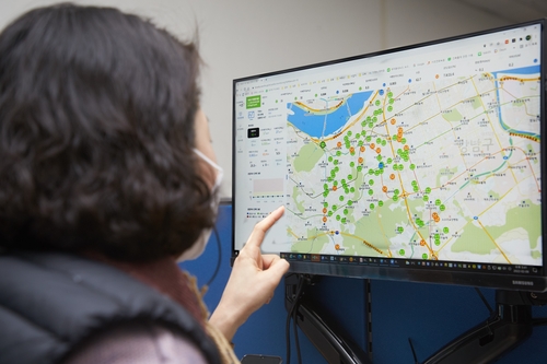 이 시스템은 구가 동네 곳곳에 설치한 대기환경 측정기 108개와 미세먼지 저감장치 '서리풀 숨터' 5곳을 활용해 미세먼지 측정 범위를 세분화했다. 예를 들어 같은 서초동이라도 교통량이 많고 상권이 발달한 강남역 주변은 미세먼지 고농도 지역으로, 녹지가 있는 용허리 공원은 미세먼지 저농도 지역으로 분석한다.