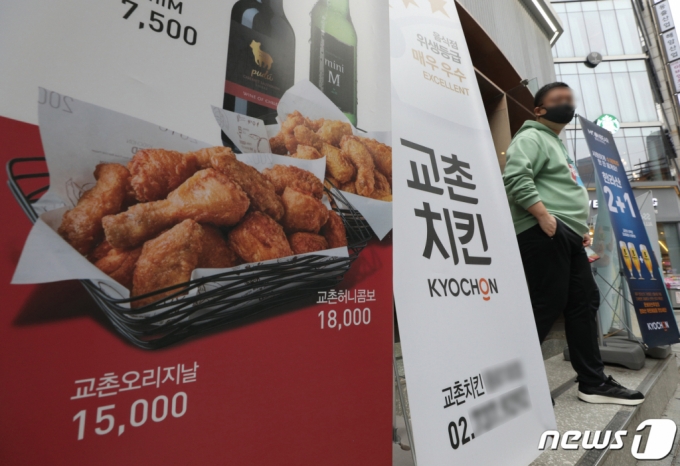 (서울=뉴스1) 신웅수 기자 = 교촌치킨이 내일부터 주요 치킨 가격을 인상한다. 교촌치킨을 운영하는 교촌에프앤비는 오는 22일부터 제품 권장가격을 평균 8.1% 인상한다고 지난 18일 밝혔다. 가격 인상에 따라 교촌오리지날과 허니오리지날이 1만 5000원에서 1만 6000원, 교촌윙과 교촌콤보가 1만7000원에서 1만9000원, 레드윙·레드콤보·허니콤보는 1만8000원에서 2만원으로 각각 가격이 오른다. 배달비까지 포함하면 교촌치킨 한마리 값이 2만 원을 훌쩍 넘게 됐다. 교촌치킨은 배달비 인상 때와 마찬가지로 수 년간 누적된 인건비 상승 및 각종 수수료 부담에 최근 전방위적 물가 상승을 가격 인상의 이유로 들었다. 하지만 치킨업계는 코로나19 사태 속에 배달 수요 증가로 지난해 사상 최대 실적을 달성했다. 교촌에프앤비의 지난해 매출은 4476억원으로 전년보다 18% 늘었고, 영업이익은 410억원을 기록했다. 사진은 21일 서울의 한 교촌치킨 매장의 모습. 2021.11.21/뉴스1 |
