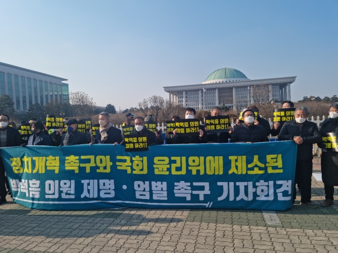 복수의 시민단체는 10일 오후 여의도 국회 앞 인도에서 박 의원을 엄벌하라는 내용의 기자회견을 개최했다.