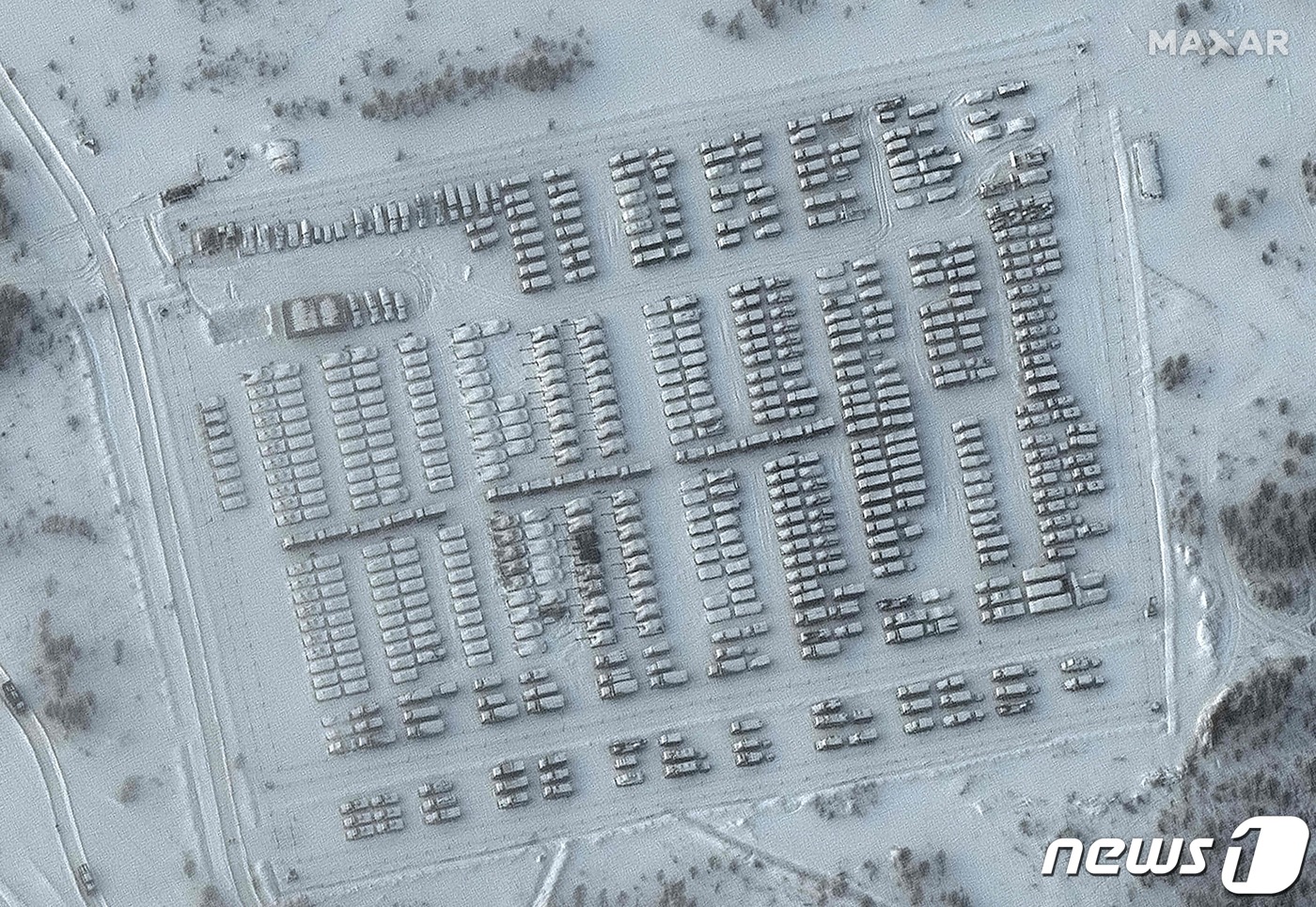 1일 (현지시간) 우크라이나 국경에 인접한 러시아 옐냐의 야전 캠프에 전투 차량이 대거 집결해 있는 모습이 보인다. © AFP=뉴스1 © News1 우동명 기자 |
