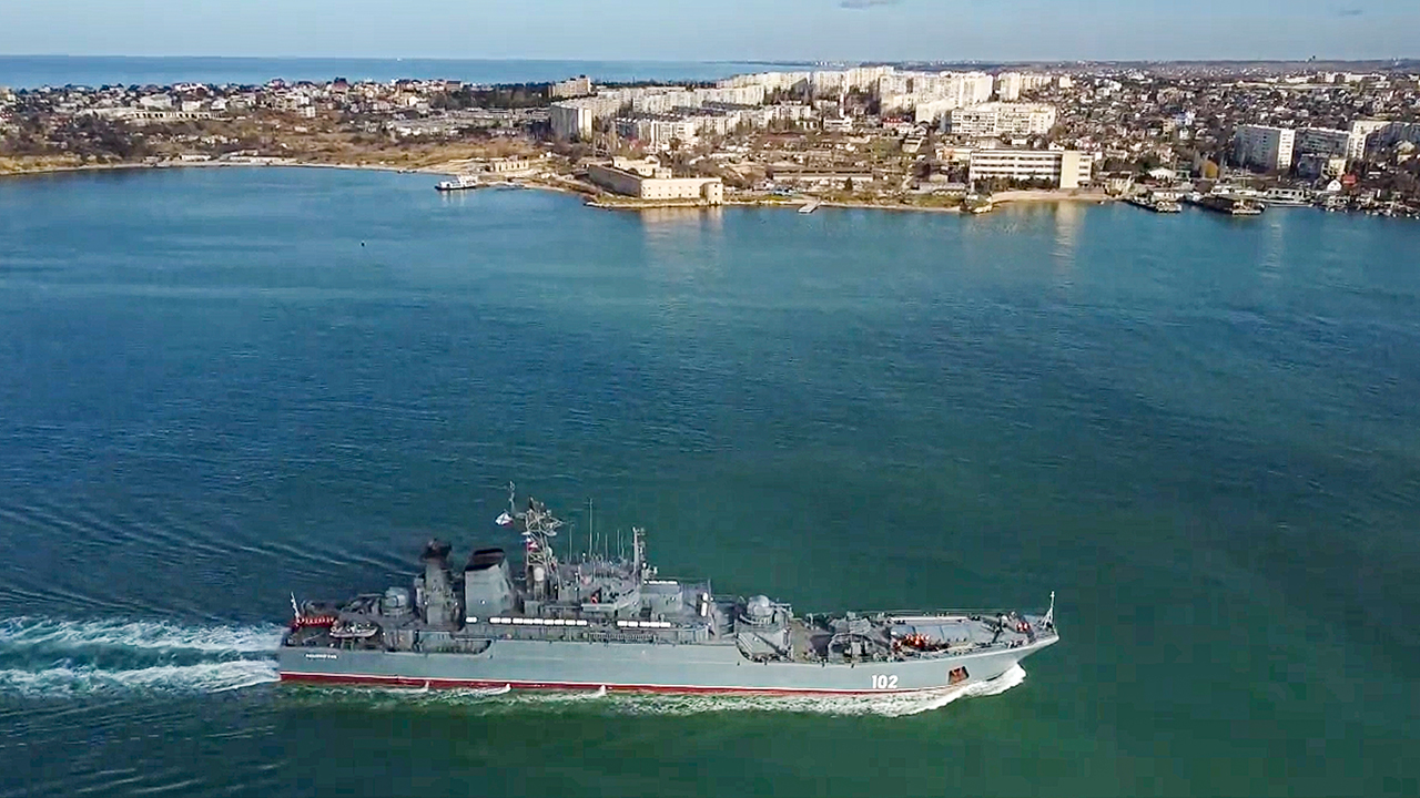 ▲ 우크라 인근 흑해 항구로 진입하는 러시아 상륙함