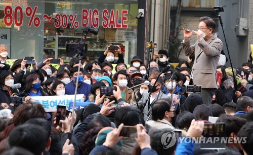 이 후보는 4개 도시에서 잇따라 진행된 야외 연설에서 '신천지 압수수색 거부 의혹', '무속인 논란', 부인 김건희 씨의 '주가조작 연루 의혹' 등을 총망라하며 윤 후보에 직격탄을 날렸다.