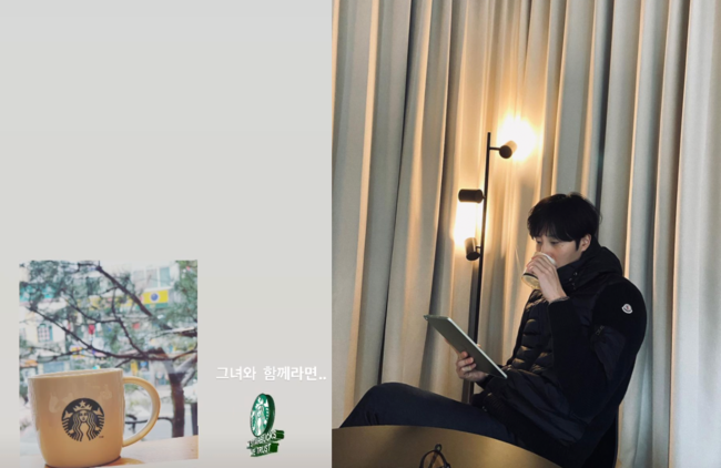 그러면서 별다방 카페도 방문한 그는 "그녀와 함께라면"이란 멘트와 함께 별다방 마크와 함께 인증사진을 올려 웃음을 안겼다.