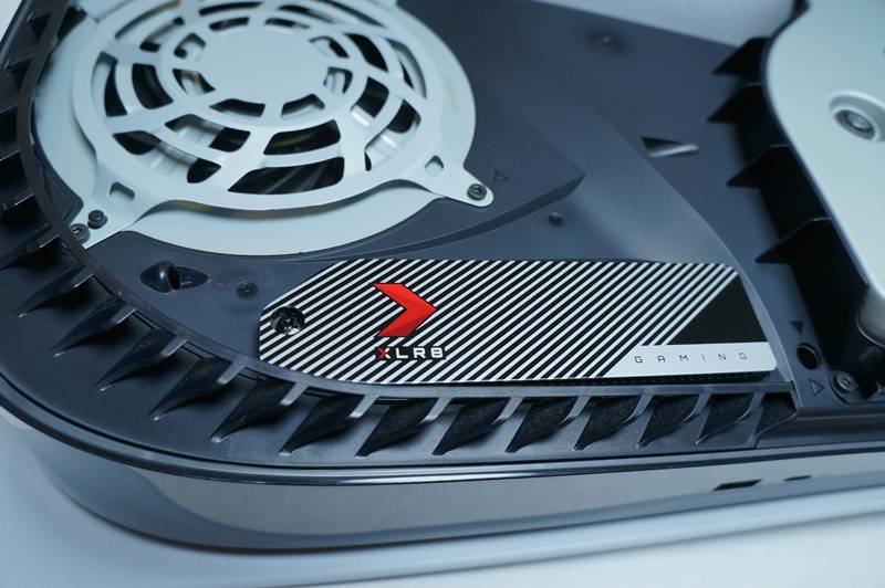 PNY 'XLR8 PS5 SSD 히트싱크'를 PS5에 장착했다. |