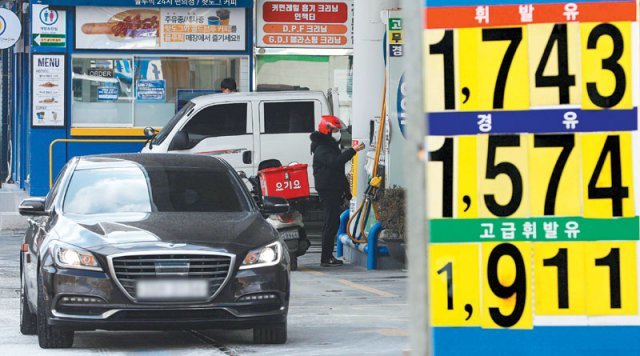 15일 서울 시내의 한 주유소에 휘발유 가격이 ‘L당 1743원’이라고 표시돼 있다. 이날 에너지경제연구원은 러시아의 우크라이나 군사 개입으로 국제사회가 러시아에 제재를 가하고 러시아산 석유 및 가스 공급이 중단되면 국제유가가 배럴당 150달러까지 상승할 것으로 전망했다. 뉴시스 |