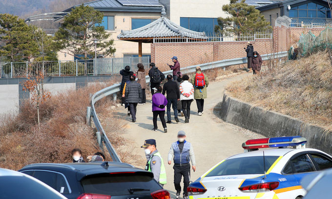 박근혜 전 대통령이 퇴원 후 머무를 것으로 알려진 대구 달성군 한 전원주택에 사람들의 발길이 이어지고 있다. 연합뉴스 |