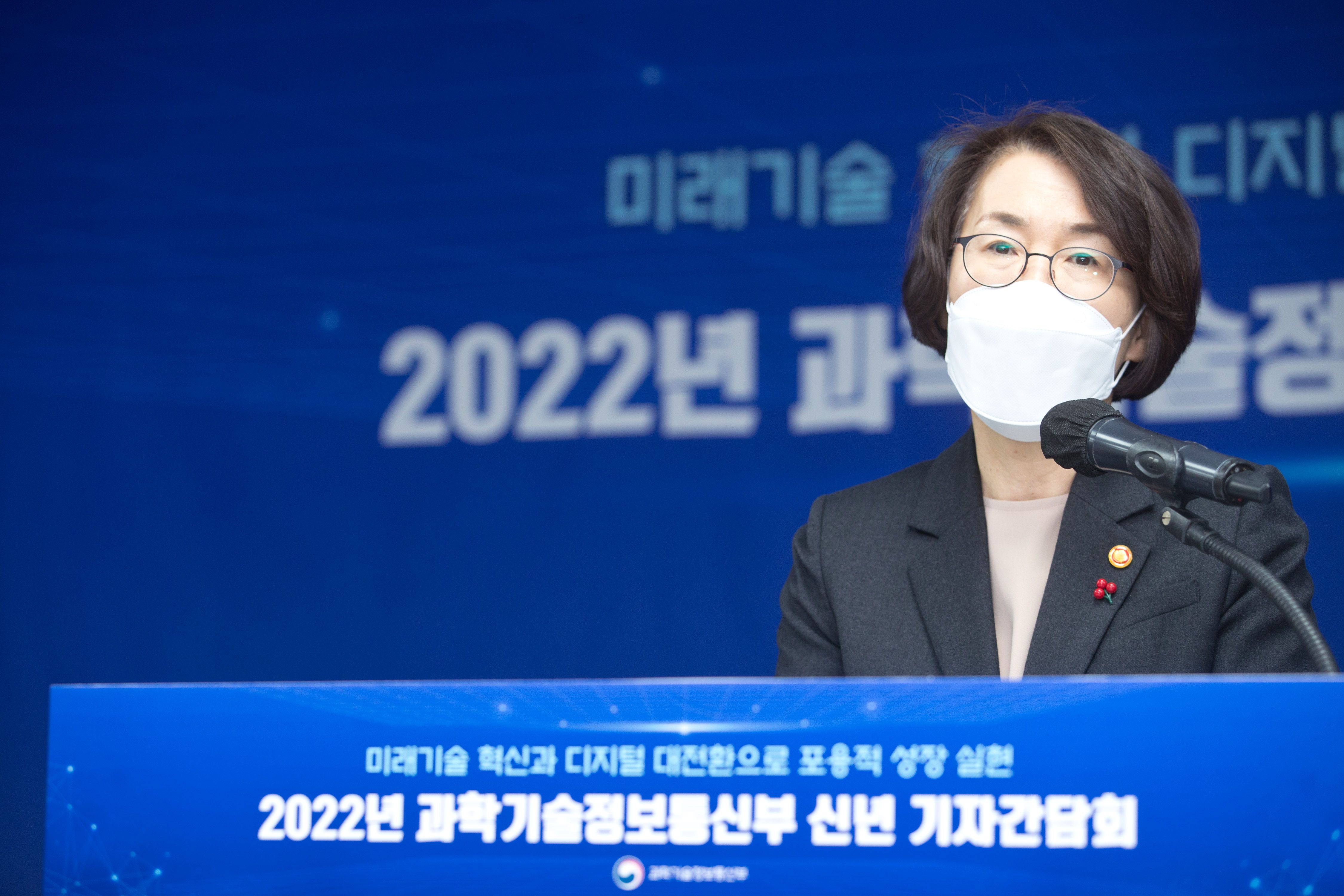 임혜숙 과학기술정보통신부 장관이 지난 1월 세종특별자치시 세종파이낸스센터 과기정통부 대회의실에서 열린 '2022 과학기술정보통신부 신년 기자간담회'에서 인사말을 하고 있다. /과학기술정보통신부 |