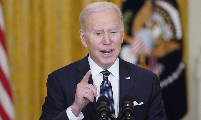 대국민연설하는 바이든 조 바이든 미국 대통령이 오는 5월 일본에서 열리는 ‘쿼드’(Quad) 정상회의에 참석한 뒤 한국을 방문할 예정인 것으로 알려지면서 3·9 대선에서 당선된 한국 대통령과 첫 정상회담이 예상되고 있다. 사진은 바이든 대통령이 15일(현지시간) 백악관 이스트룸에서 대국민연설을 통해 우크라이나 사태 등에 대한 입장을 밝히고 있는 모습. 워싱턴=AP연합뉴스 |