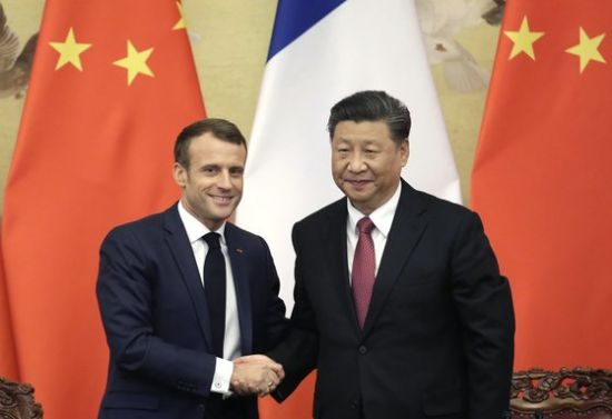 베이징에서 손을 맞잡은 에마뉘엘 마크롱 프랑스 대통령과 시진핑 중국 국가주석. AP=연합뉴스 |