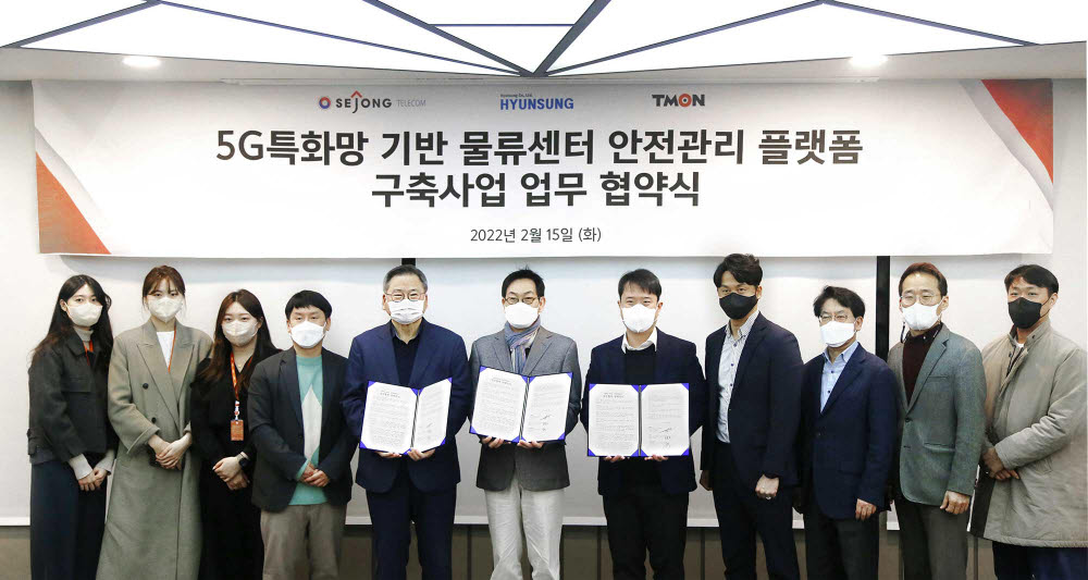 세종텔레콤은 현성, 티몬과 '5G 특화망(이음 5G) 기반 물류센터 안전관리 플랫폼 구축사업 업무 협약'을 지난 15일 체결했다.