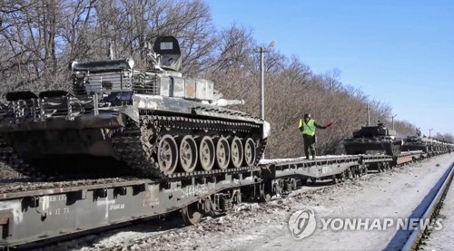 상주기지로 복귀하는 러시아군 탱크들 |