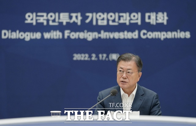 [더팩트ㅣ허주열 기자] 문재인 대통령이 17일 청와대에서 열린 '외국인 투자 기업인과의 대화' 간담회를 주관하며, 코로나19 위기 속 사상 최대 투자 유치 실적을 일궈낸 외투기업과 관계자들을 격려했다. 또한 외국인 투자 성과와 정책 방향도 논의했다.